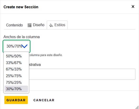 Nota: La alineación vertical de elementos es exclusiva para diseños con más de una columna.