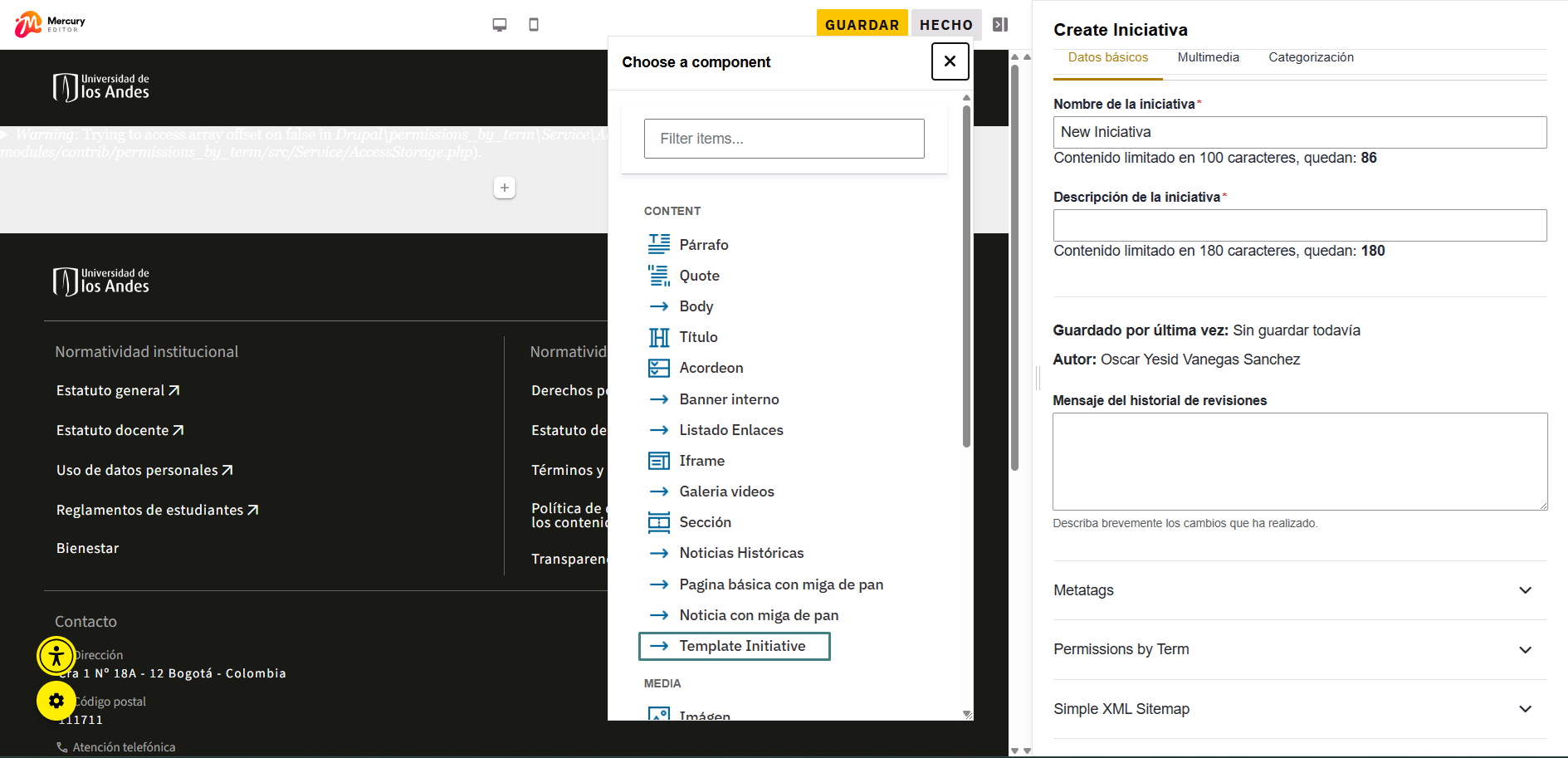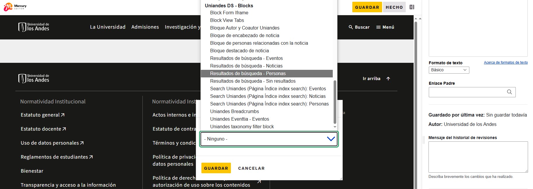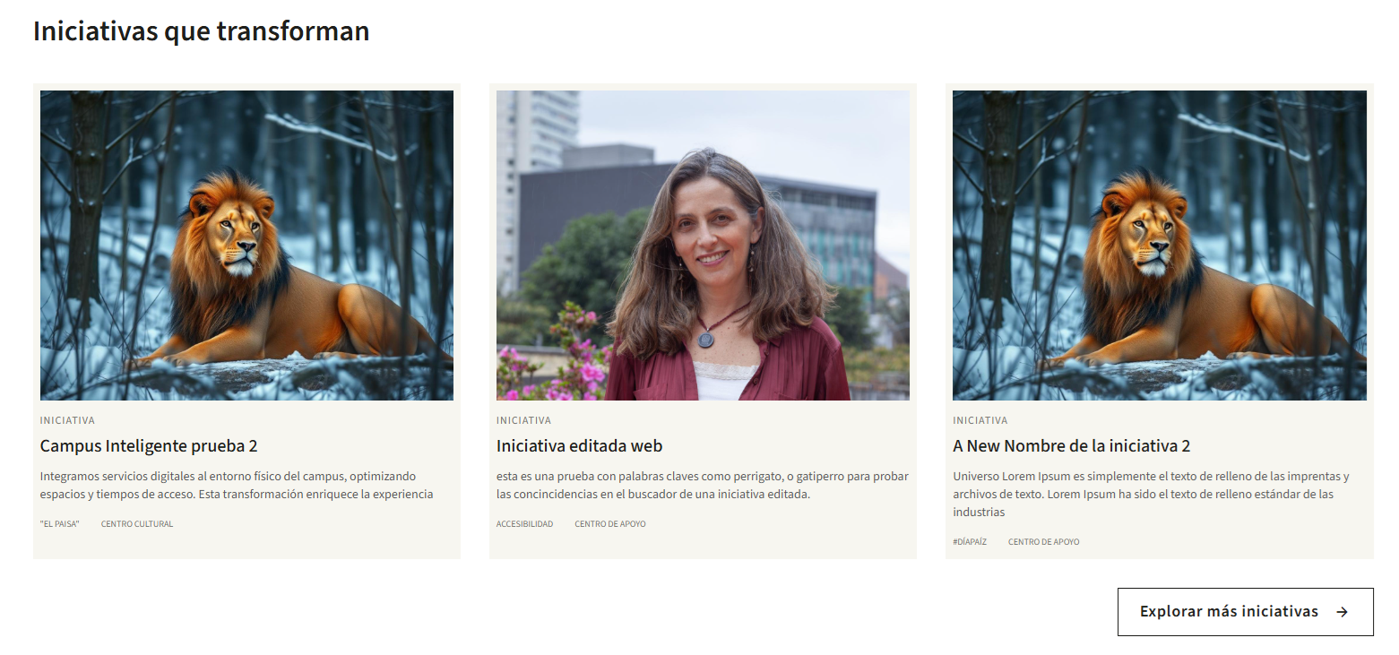 Los componentes de Drupal son herramientas esenciales para la creación de contenido y la construcción de páginas. Estos componentes están diseñados para contextos específicos, lo que garantiza que los autores sigan las directrices de diseño y editoriales establecidas por la Universidad. De esta manera, se asegura que todo el contenido publicado mantenga una apariencia y calidad coherentes.