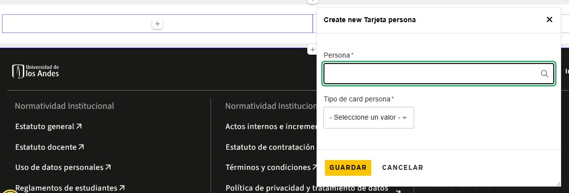 Se pueden agregar hasta 4 personas se cargan de forma directa. Usando el buscador y atributos para URL _self = Misma ventana | _blank = Nueva pestaña.
