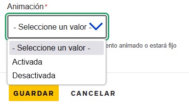 Bloque de animación que permite seleccionar animación uno (dos imágenes) o animación dos (tres imágenes). Una vez configurado se muestra de la siguiente forma: