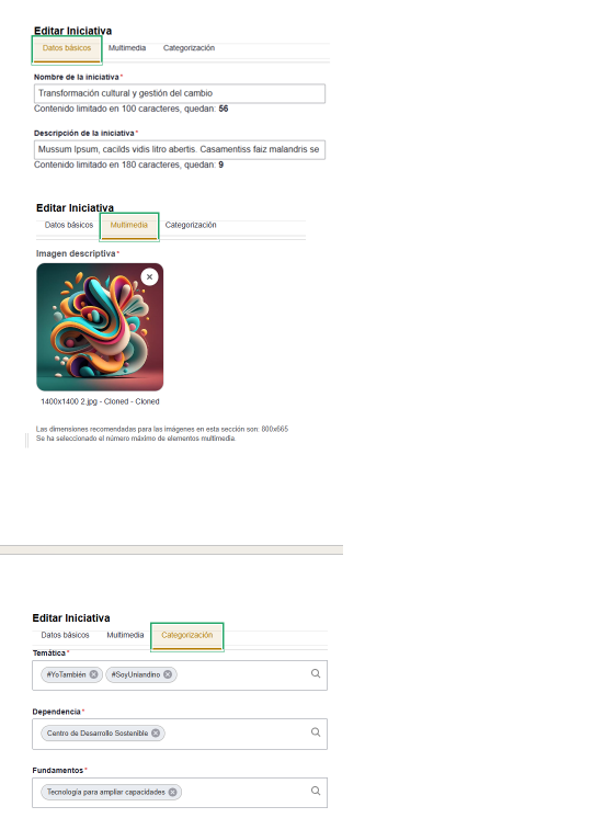 Esta opción permite configurar las iniciativas para su visualización en el sitio TU+. Ofreciendo así un acceso rápido y sencillo al contenido de todas las iniciativas del sitio TU+.