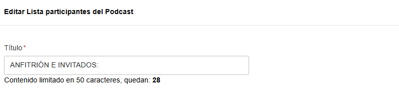 En esta sección vamos a lograr colocar los datos de las personas que participaron en el podcast de forma directa.