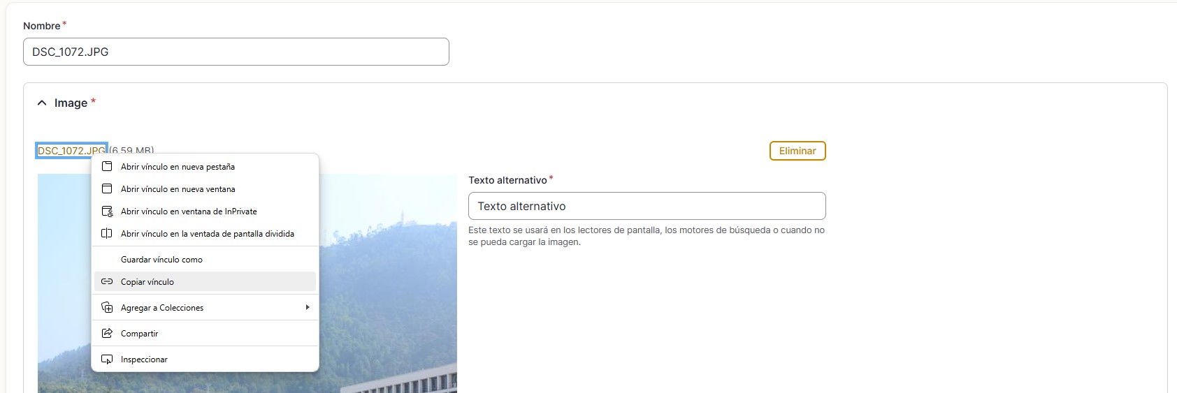 Para obtener la ruta del contenido multimedia, en la selección de elementos clic en editar.