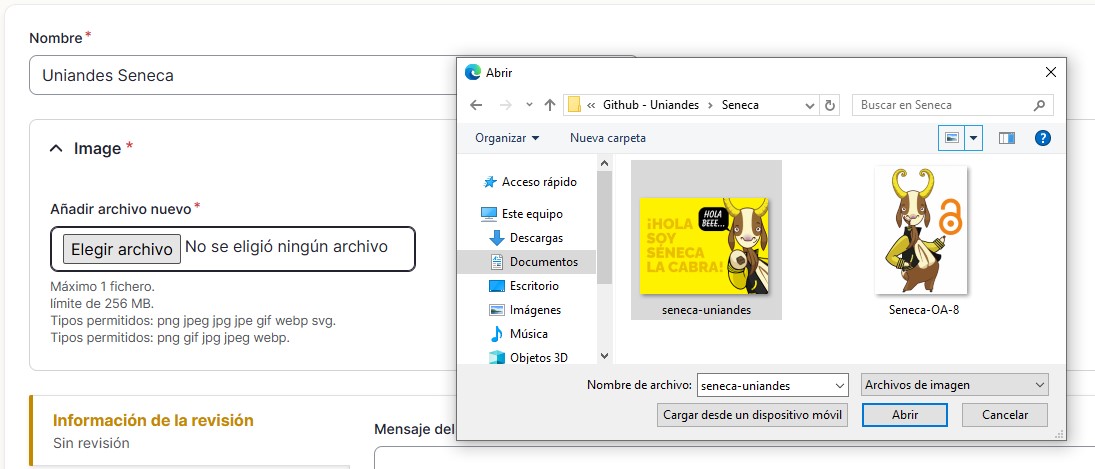 Formatos permitidos: png, jpeg, jpg, jpe, gif, webp y svg.