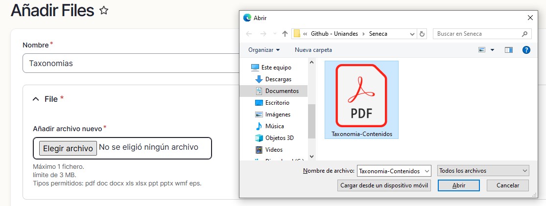 Formatos permitidos: pdf, doc, docx, xls, xlsx, ppt, pptx, wmf y eps.