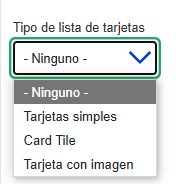 Tipo de lista de tarjetas: Esta opción permite seleccionar el tipo de tarjeta que se desea mostrar, lo cual determinará la visual de la tarjeta y los campos que se mostrarán en ella.