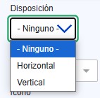 Disposición: Este campo permite seleccionar si la tarjeta crecerá de forma horizontal o vertical. Aplica para los tipos de tarjeta tile e imagen.