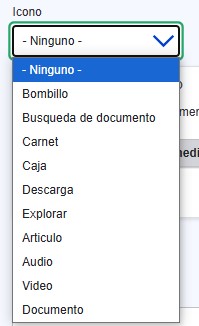Icono: Permite seleccionar el icono que se visualizara en la esquina superior izquierda de la tarjeta. Solo se muestre en el tipo de tarjeta tipo tile.
