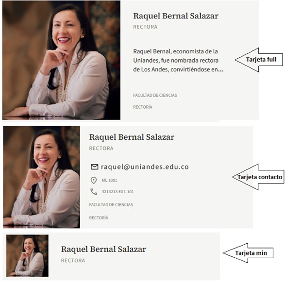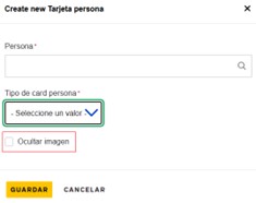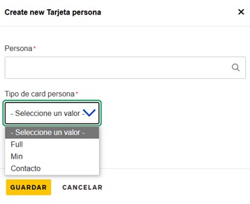 Tipo de Card persona: En esta lista aparecen 3 tipos de tarjetas, Full, Min y Contacto. Seleccionamos la vista de preferencia.